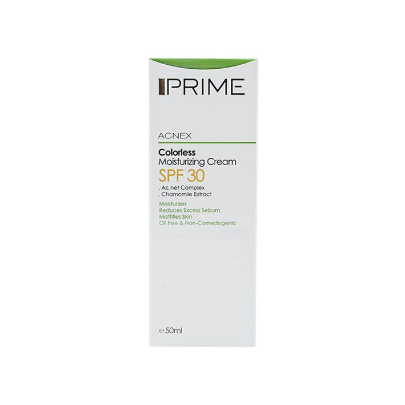 کرم مرطوب کننده بی رنگ SPF 30 پریم 50 میلی لیتر-Prime Acnex Moisturizing Cream 50ml SPF30 Colorless